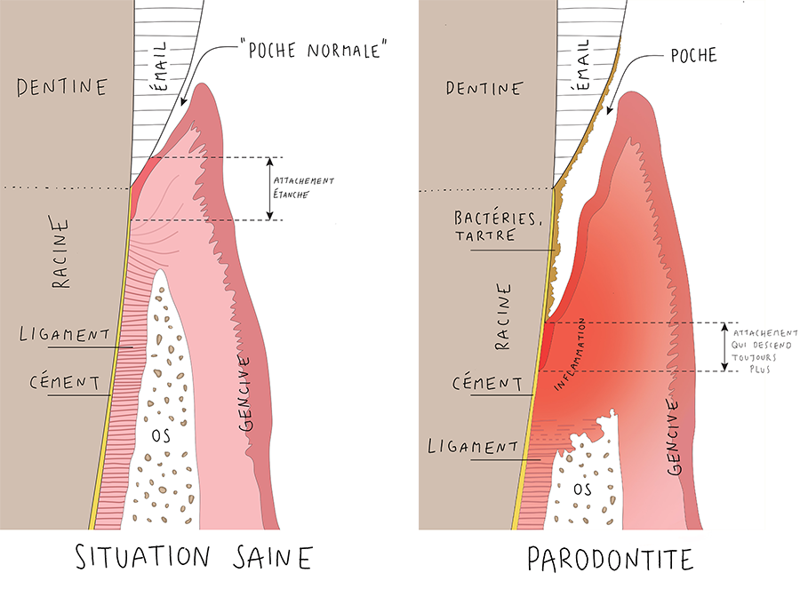 C’est la destruction du ligament qui relie la racine de la dent à l’os. Contrairement à ce que l’on peut croire, les dents ne sont pas maintenues en place par l’os et la gencive. La dent n’est pas immobilisée dans son alvéole par une liaison directe entre la racine et l’os. Lire la suite